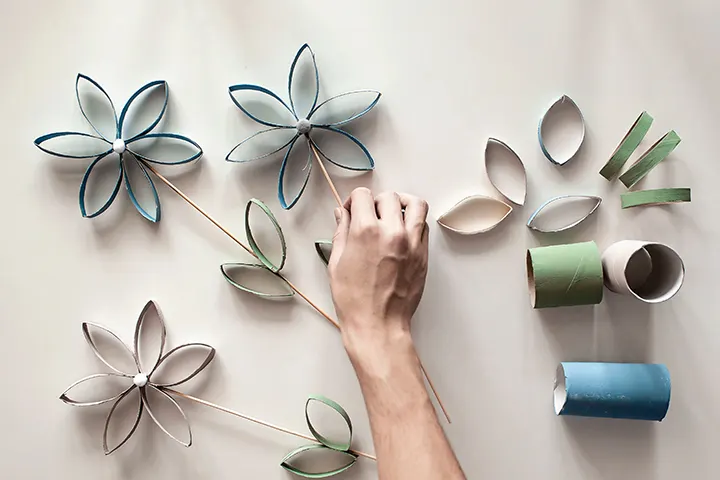 Μία εύκολη και όμορφη κατασκευή που μπορείτε να φτιάξετε μαζί με τα μικρά σας με αφορμή τη γιορτή της μητέρας, είναι εκείνη των χειροποίητων, χάρτινων λουλουδιών. Πώς θα τα φτιάξετε παρέα; Αρχικά θα χρειαστείτε μερικά ξύλινα στικ, ρολά από χαρτιά υγείας, κόλλα και χρώματα -ιδανικά νερομπογιές.