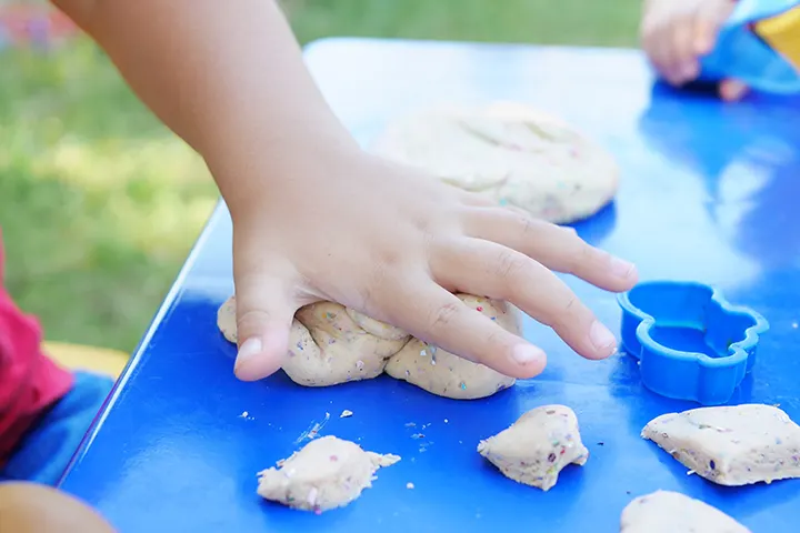Η διαδικασία είναι απλή και ξεκινά με το να ζητήσετε από το μικρό σας να χρωματίσει τα ζυμαρικά, σε διάφορες αποχρώσεις. Στη συνέχεια, θα κολλήσετε στο χαρτόνι το κομμάτι από το ύφασμα, δίνοντάς του πρώτα ένα κωνοειδές σχήμα, μιας και εκεί θα τοποθετήσετε στη συνέχεια τα «λουλούδια» σας. Αμέσως μετά και αφότου τα χρωματιστά φιογκάκια θα έχουν στεγνώσει, θα τα κολλήσετε πάνω στο χαρτόνι, σχηματίζοντας ένα εντυπωσιακό και πολύχρωμο «μπουκέτο» λουλουδιών.